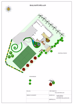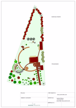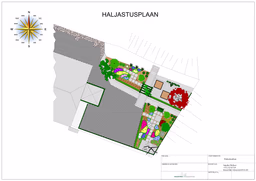 | Haljastusplaan | Haljastusplaanis lahendatakse aia funktsionaalne jaotus, luuakse teedevõrk ja märgitakse aiarajatiste ja arhitektuursete väikevormide asukohad, platsid, hekid, peenrad, asukoht ilmakaarte suhtes, valgustingimused, mis on väga tähtis taimmatejali valikul | al 1400.- |